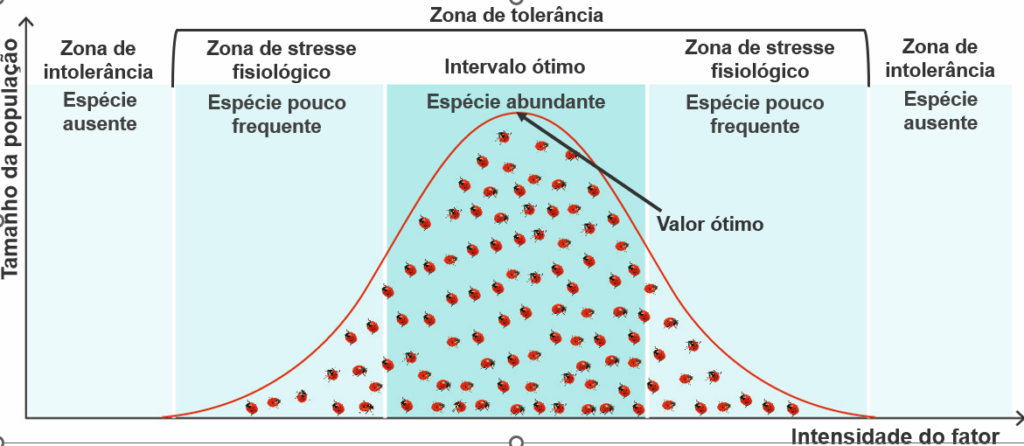 Limites de tolerância – Limite máximo e mínimo, além dos quais a espécie não consegue realizar as suas funções vitais.